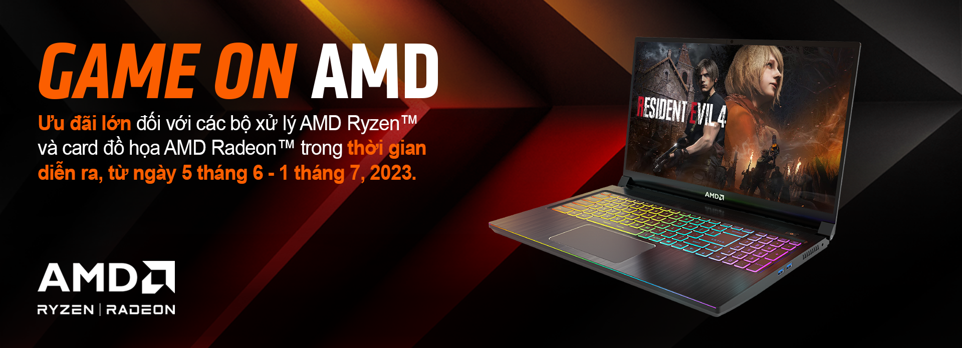 Các khách hàng mua các sản phẩm Laptop sử dụng 1 trong các dòng card màn hình AMD Radeon™ RX 6000 series hoặc AMD Radeon™ RX 7000 series tại các đại lý phân phối, kênh bán hàng On-Offline chính hãng trên toàn quốc