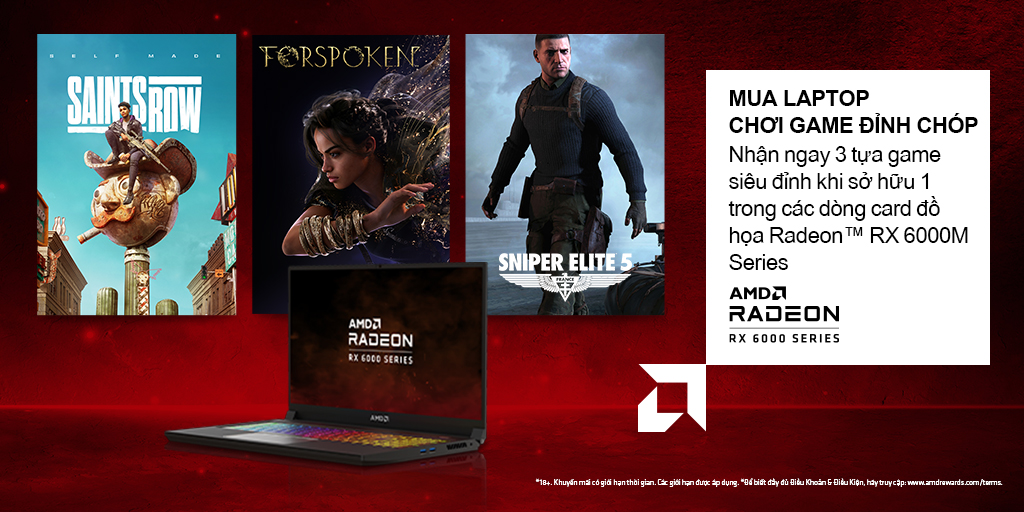 Dòng card đồ họa mới nhất nhà AMD với Radeon™ RX 6000 Mobile Series đã tạo nên cú "HIT" đầy bất ngờ trong giới gamer lẫn thị trường máy tính xách tay và trở thành cấu hình mơ ước của nhiều gamer. Nhằm thỏa mãn niềm khao khát của các game thủ, AMD dành tặng đến 3 trò chơi AAA cực HOT cho các khách hàng nào sở hữu laptop sử dụng 1 trong các dòng card Radeon™ RX 6000M Series.